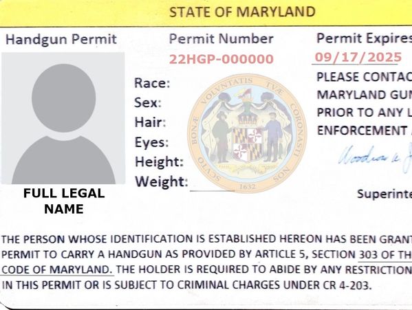 Any person who wishes to legally wear, carry or transport a handgun in Maryland must possess and maintain on your person a valid Maryland Handgun Wear and Carry Permit (handgun permit) issued by the Maryland Department of State Police.